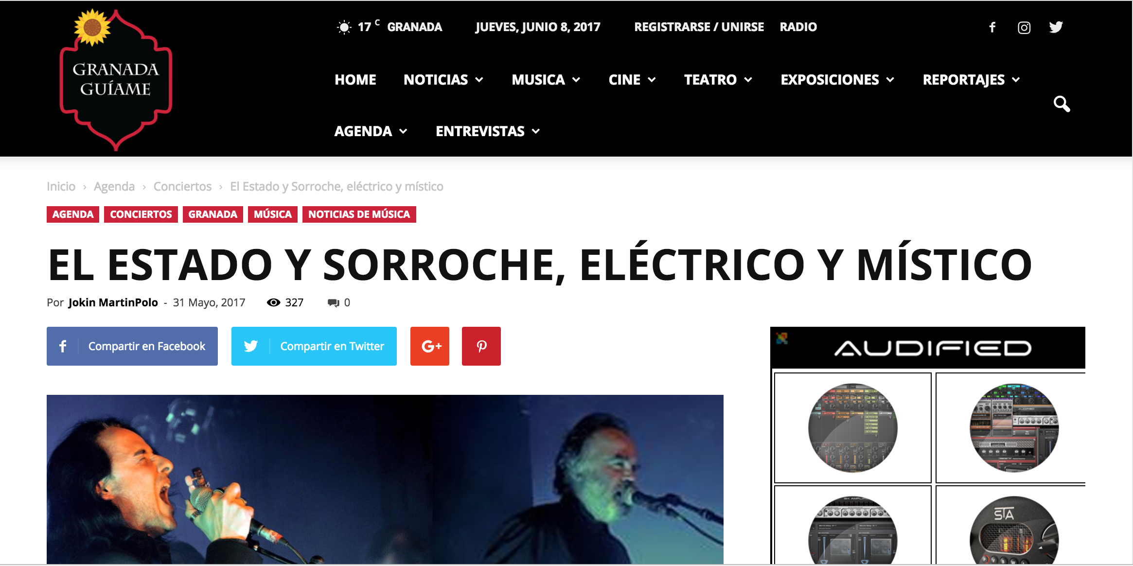 - Quédense con los nombres (Sorroche y El Estado). Juntos han dado forma a una banda de after todo, after punk, after flamenco, after fusión…de una densidad especialmente consistente. (JJG en Ideal.es)